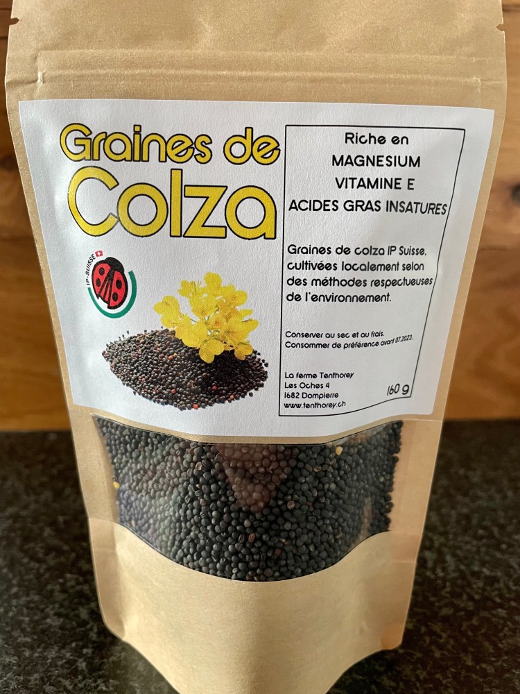 Les graines de colza, parfois baptisés caviar thurgovien, sont un superaliment. Ces graines sont riches en MAGNESIUM en VITAMINE E et en ACIDES GRAS INSATURES. Elles peuvent être utilisées dans toutes sortes de recettes.